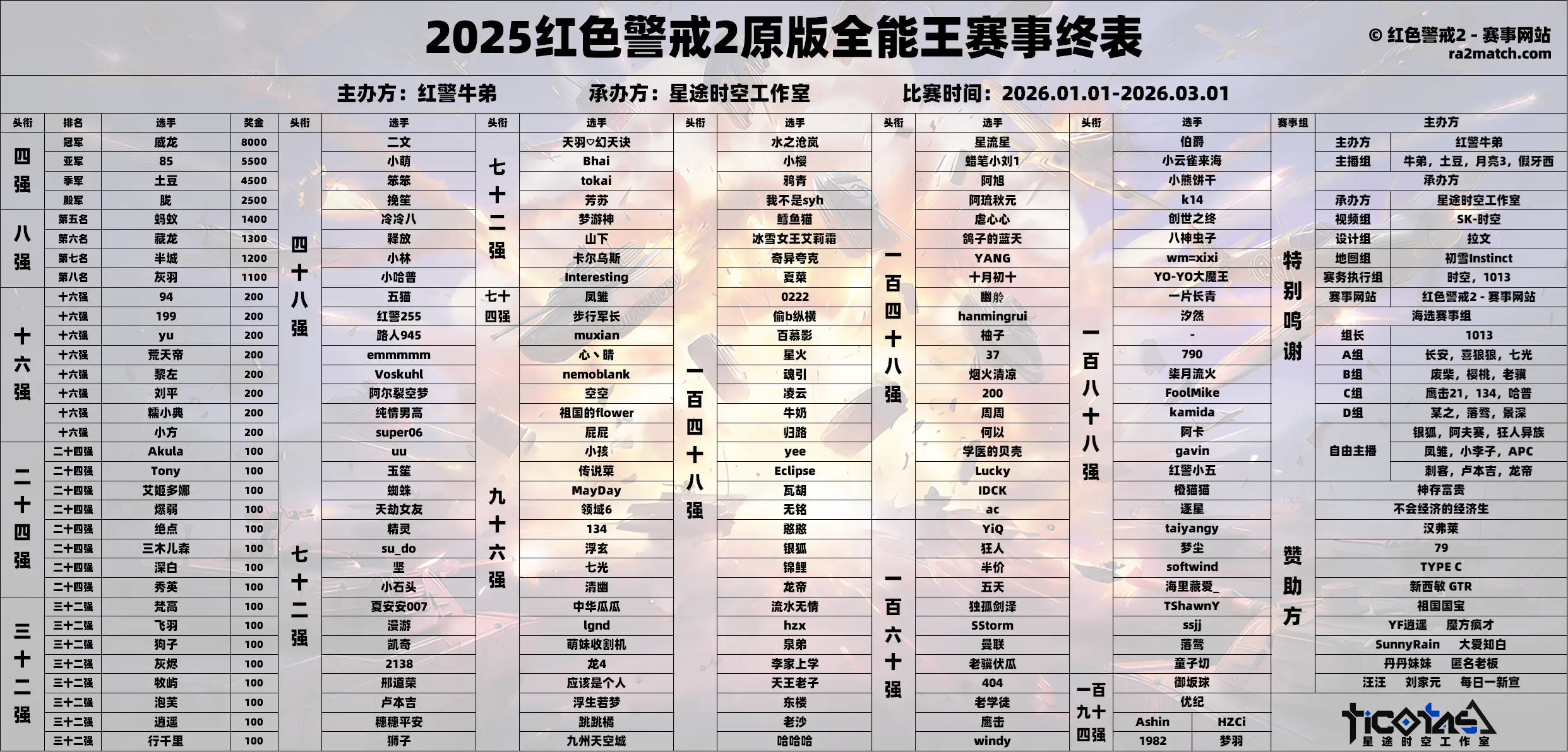 由红警牛弟主办 的《2025原版全能王锦标赛》即将开放报名!本次赛事面向所有玩家,玩家皆可报名参加。